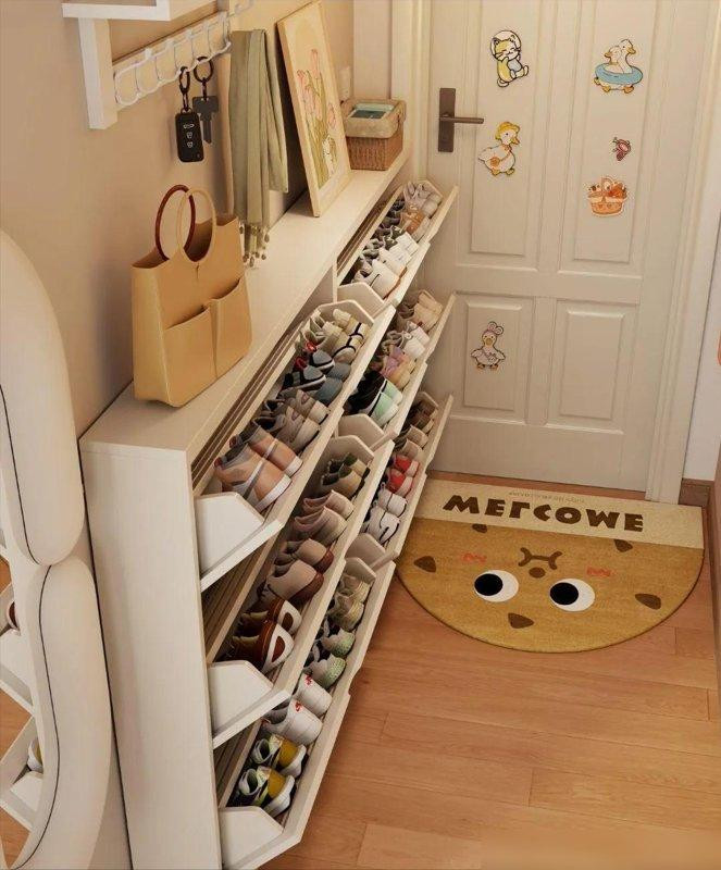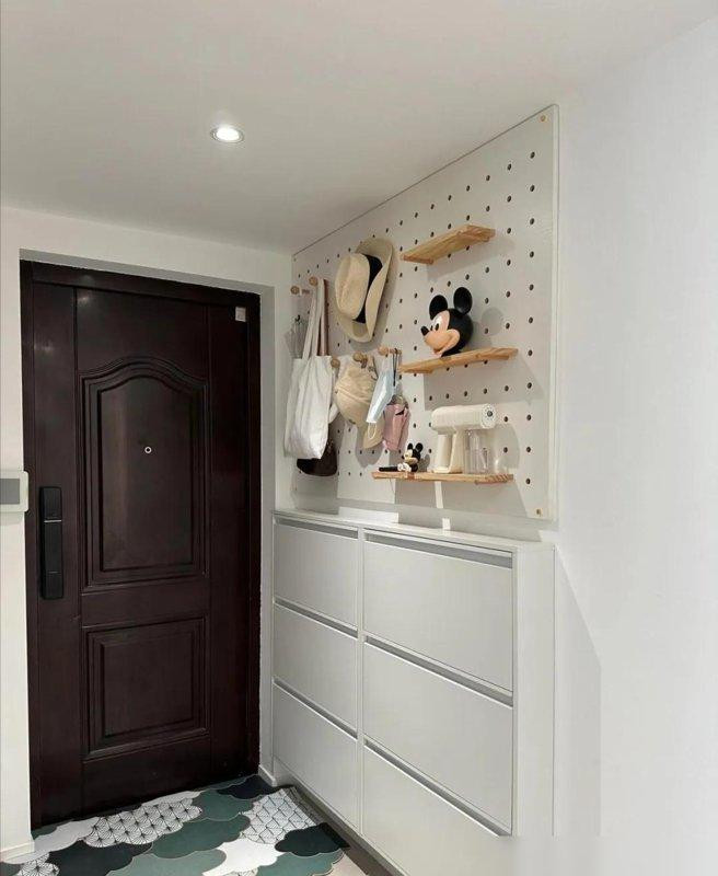装修时大家总盯着客厅的大沙发、卧室的软床,可最影响“回家心情”的其实是玄关——那扇门推开的瞬间,看到的东西直接决定你当天的“情绪开关”。比如我闺蜜之前租的老破小,玄关就半米宽,每天下班推开门,一地的鞋、皱巴巴的外套堆在鞋架上,连换鞋的地方都得“踮脚挤”,她说“每次开门都像撞进了杂物间,累了一天的劲儿全散了”。后来她咬咬牙装了个12cm深的超薄鞋柜,底部塞下8双常穿的鞋,上面钉了块洞洞板挂钥匙、包包,现在推门进去,清清爽爽的,连她猫都愿意蹲在旁边蹭鞋——你看,搞定玄关的“乱”,其实就是搞定了回家的“第一口甜”。
