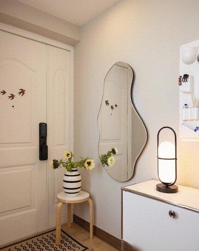 镜子这事儿更实际——不是说迷信“反射财气”,是真的“吓人和露隐私”。我之前租的房子,房东在玄关装了面大镜子对着门,有天加班到11点,没开灯摸黑掏钥匙,突然瞥见镜子里有个“黑影”,吓得我尖叫一声,钥匙都掉在地上。后来才反应过来是自己的影子!还有次快递员上门,我开门拿快递,他眼神往镜子里飘——原来镜子刚好照到客厅的沙发,我刚叠好的睡衣还扔在上面,多尴尬啊!想装镜子没问题,嵌在墙里或者做个镜面衣柜,既方便出门整理头发,又不会“吓自己”“露隐私”,这不比对着门的大镜子强?